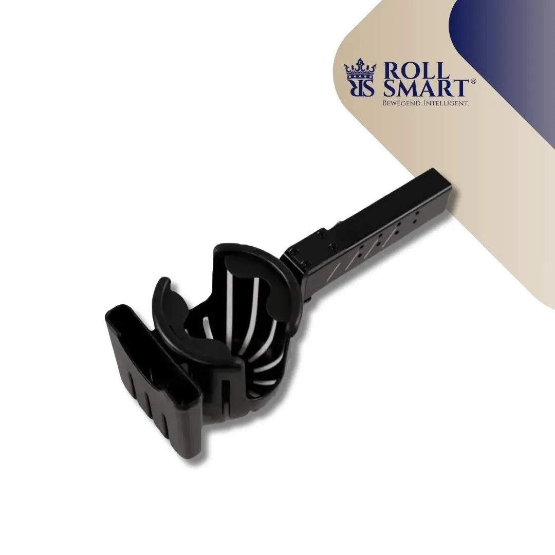 Die Halterung ist robust gebaut, einfach zu montieren und fügt sich optisch unauffällig in das Design des Rollstuhls ein. So bleibt alles sicher an seinem Platz, selbst bei unebenen Strecken.